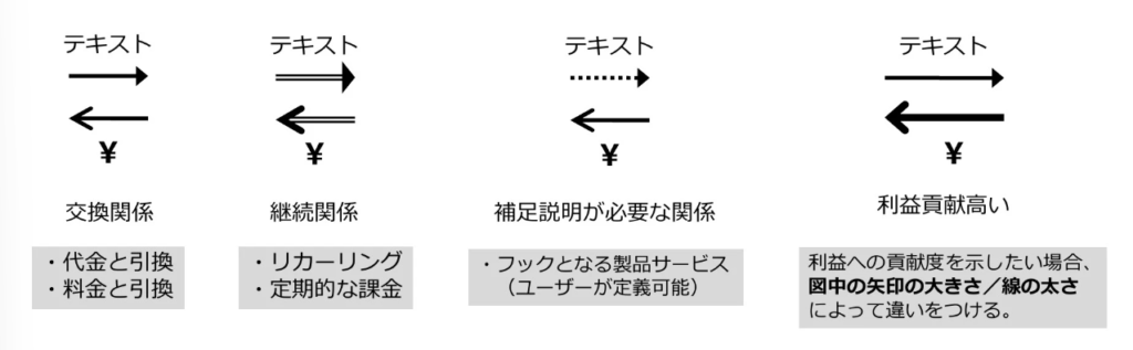 自社の製品サービスと代金や料金との交換関係などを矢印でつなぎます。