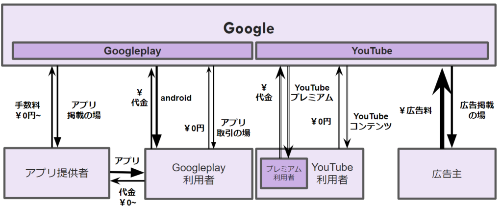 Googleは、補完材プラットフォームモデルと広告モデルとフリーミアムモデルを巧みに組み合わせることで、広範なユーザー層にアプローチし、安定した収益を上げています。