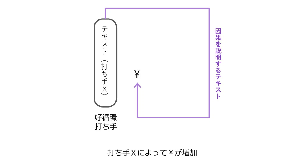 たとえば、企業が製品にさらなる付加価値を加えるという打ち手を講じた場合、製品の魅力が増し収益が伸びることで、再投資が進み好循環が生まれる状況を表すことができます。
