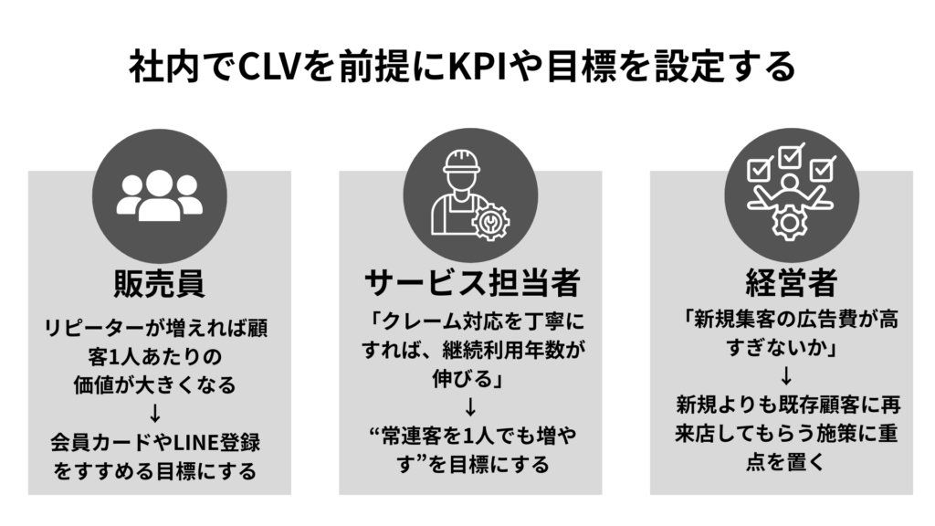③ 社内でCLVを前提にしたKPIや目標設定を導入する