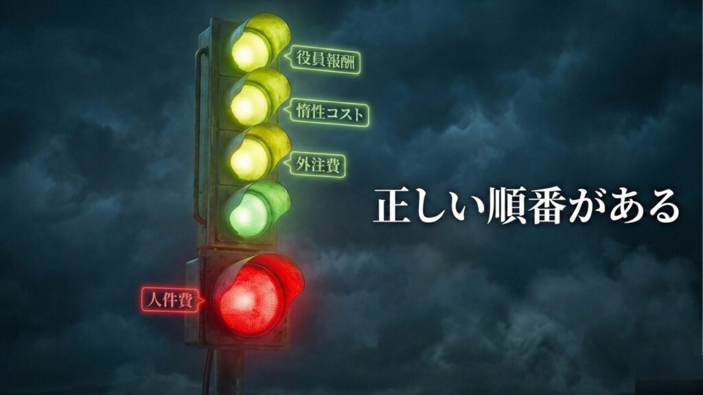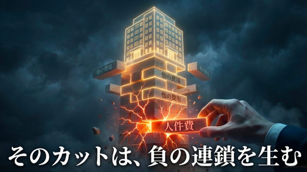 そして費用の中で最大の固定費が人件費である以上、「ここを削れば一番インパクトが大きい」と考えるのは、ある意味で当然の発想です。この思考に至ること自体を責めるべきではありません。
