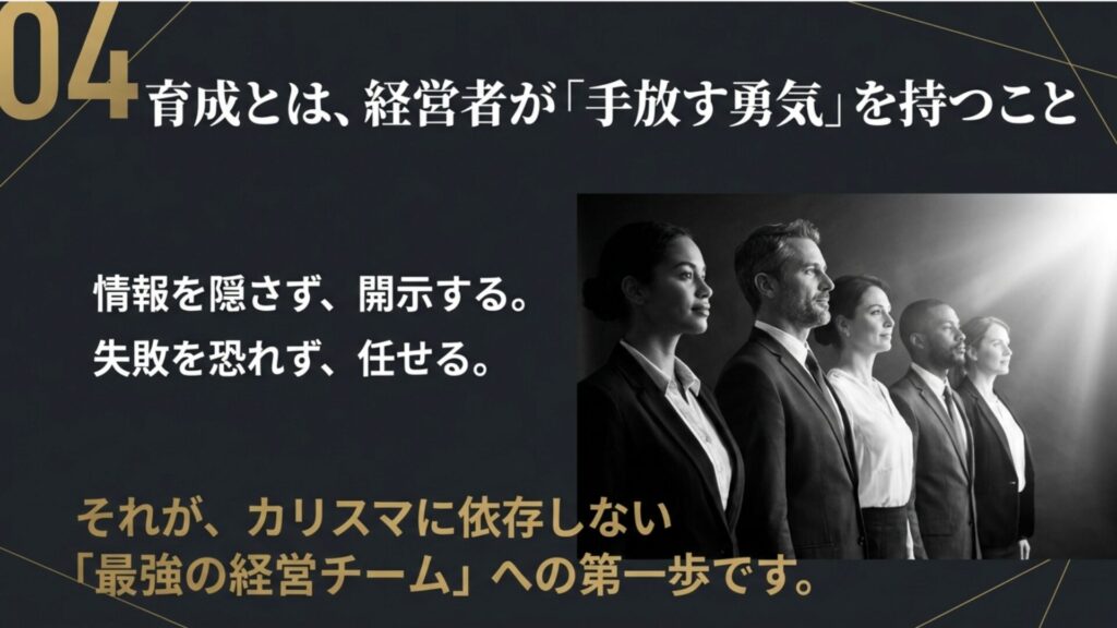 それが、特定個人のカリスマ性に依存しない、最強の経営チームを作るための最初にして最大のスイッチです。