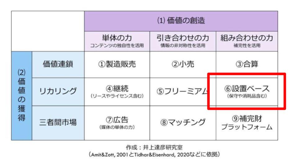 設置ベースモデル(ジレットモデル)=「組み合わせの力」による価値創造 ×「リカーリング」による価値獲得