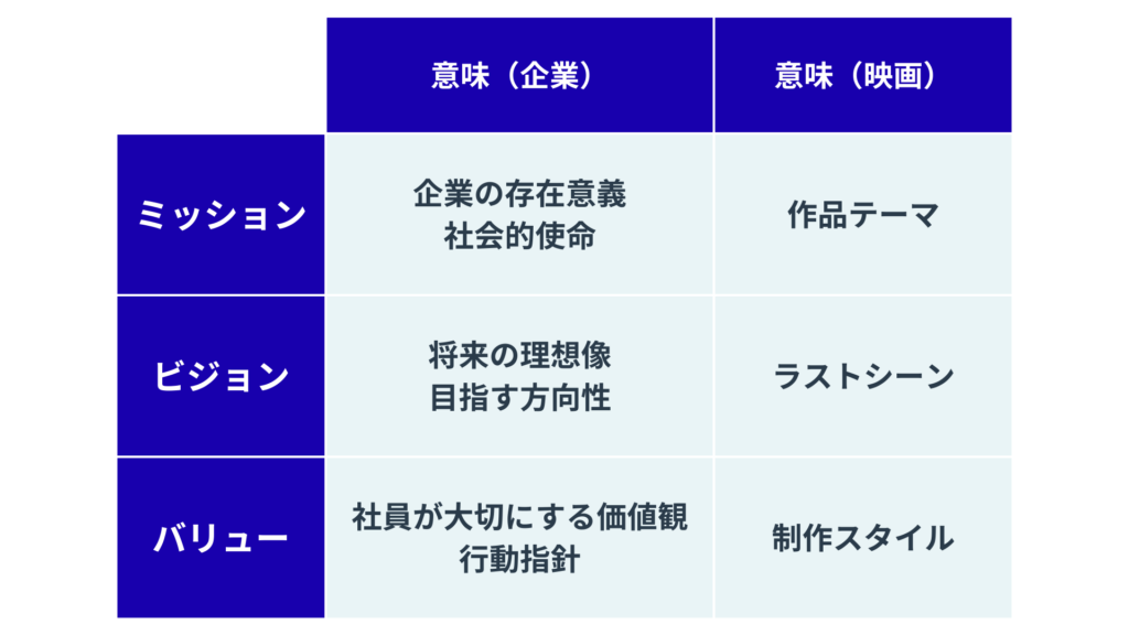 この記事では、MVVを「映画」という分かりやすく楽しい比喩を使って直感的に理解し、企業の例や実践方法まで網羅的に解説していきます。