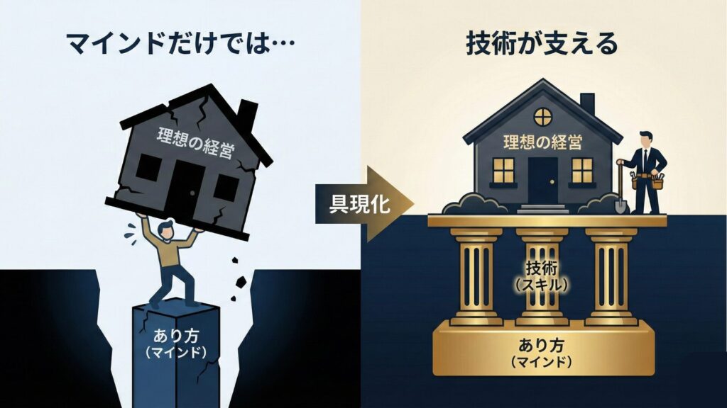 「あり方」という土台の上に、それを具現化するためのドライな「技術」という柱があって初めて、盤石な経営が可能になります。