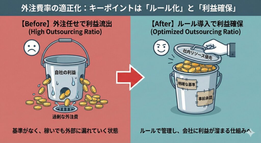 外注費率を一定以下に抑えるルールを作るだけで、収益性は大きく改善されます。