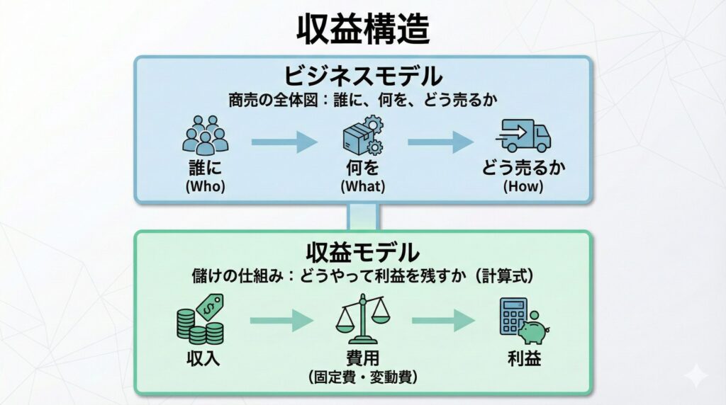 もう一つの視点が、そのビジネスモデルの中で「具体的にどうやってお金を残すか」という計算式、つまり収益モデルです。