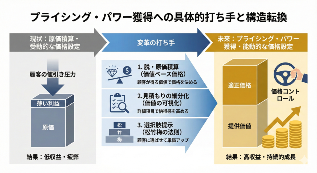 収益改善において、最も即効性がありインパクトが大きい打ち手は「単価の向上」です。競合価格や原価に縛られず、自社で価格をコントロールする「プライシング・パワー」を獲得するための具体的な手法を解説します。